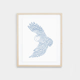 Owl is both lovable + grand, and on his own in this print, very regal. We love owl on our walls for texture and for grace. In our soft Bay Blue owl is perfect for a bedroom.