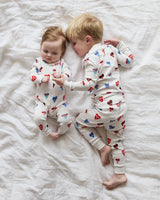 Nothing cuter than little ones in printed pajamas! Our Zip Sleeper features a double zipper up the front and snap tab at collar. Made from a super soft ribbed cotton, which allows for a little extra give and roomier fit that also fits baby longer! Fits true to size.