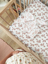 Crib Sheets are the easiest way to set the tone or refresh the Nursery. And in a beautiful print, it can make the space feel right for Baby and you. Radish has a slightly floral look, but it’s a hearty root vegetable–a contrast we adore. Mauve is our pretty muted pink that pairs well with our other prints in Mauve + Blush.