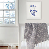 "Peace Begins With Me" was handlettered by Liz's 7 year old daughter, Louise, and is a common meditative mantra she learned from her teacher. This message of peace + hope was first used this first on our Holiday Pajamas, and the message has resonated so loudly with our community that we made it a print–a constant reminder of where we need to turn first. Blue inky text, for a beautiful contrast against the bright white backdrop.