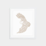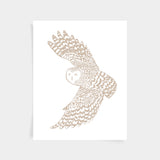 Owl is both lovable + grand, and on his own in this print, very regal. We love owl on our walls for texture and for grace. In our warm neutral wheat owl is serene in any room.