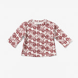 A soft long sleeve t-shirt, with snaps at the neck, for an easier time going over babies head. Cutest look when paired with our baby jogger!