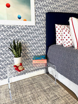 We love Alligator for his toothy grin and spikey body. His smile makes us smile! This wallpaper print is super fun in a bedroom and in Denim, makes a big impact in a small space like a bathroom, laundry room or nook.