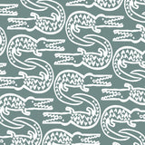 We love Alligator for his toothy grin and spikey body. His smile makes us smile! This wallpaper print is super fun in a bedroom and in Spruce, makes a big impact in a small space like a bathroom, laundry room or nook.