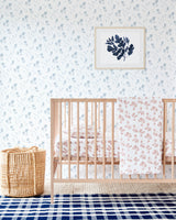 Our Magnolia print celebrates the beginning of spring and that magical week of blooming, bringing us joy to think of all year round! In our Bay Blue color, this wallpaper is soft and sweet and instantly softens any space. We personally love it on all walls of a bedroom or nursery.