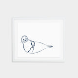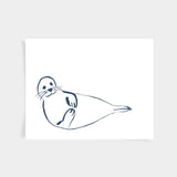 Seal's debut! This sweet lounging animal animal is great for a children's room, but the line work is interesting enough for any room. In Denim this seal is a bold neutral.