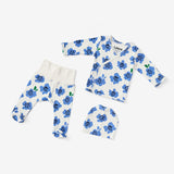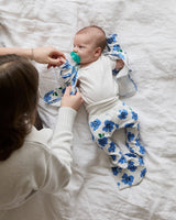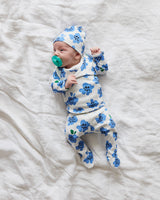 This is the sweetest set for the littlest little. We've updated this fan favorite a bit to make it even better. The wrap-style top with hand-covers snaps on the side to avoid baby’s sensitive belly button. The pant has a new wider, soft waistband that goes nice and high on baby's belly. The footed pant + hat help keep baby extra warm. Now in more than one size for longer use!